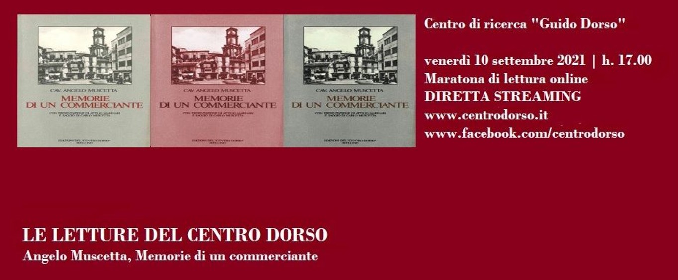 AVELLINO – Venerdì 10 settembre 2021 il Centro Dorso ripropone il tradizionale appuntamento con la Maratona di lettura, quest’anno per la seconda volta online. Giunta alla VII edizione, l’iniziativa questa volta proporrà ai giovani e all’opinione pubblica la lettura collettiva delle Memorie di un commerciante, di Angelo Muscetta (Av, Edizioni del Centro Dorso, 1984). Angelo Muscetta, padre del grande critico letterario avellinese Carlo, cominciò a scrivere le sue memorie alla fine del 1943 e le interruppe qualche tempo dopo, probabilmente nel 1945. Nate come cronache domestiche, riservate dall’autore alla ristretta cerchia dei suoi familiari, le Memorie ci offrono il felice ritratto di una famiglia di commercianti meridionali durante l’età giolittiana.