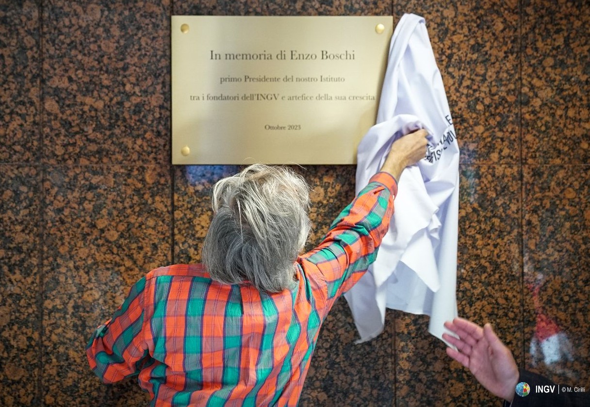 Uno dei momenti più significativi dell'evento è stato l'inaugurazione di una targa commemorativa, posta nel salone d’ingresso nella sede dell'Ingv a Roma che vuole rappresentare un tributo a Enzo Boschi e al suo esempio di dedizione che continuerà a ispirare le generazioni future di scienziati e ricercatori.