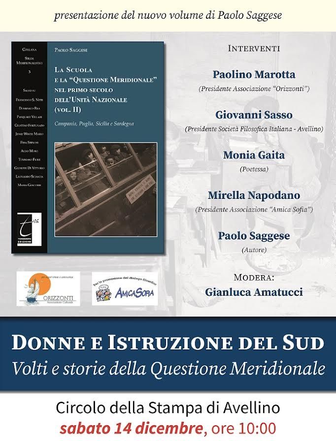 AVELLINO – Sabato 14 dicembre 2024, alle ore 10:00, presso il circolo della stampa di Avellino, si terrà la presentazione del nuovo volume di Paolo Saggese, "La scuola e la questione meridionale nel primo secolo dell’Unità nazionale" (Vol. II), edito da Il Terebinto Edizioni (già disponibile in libreria, 200 pagine, € 15,00). Il testo approfondisce le dinamiche sociali e culturali che hanno caratterizzato l'istruzione nel Sud Italia, con un focus su Campania, Puglia, Sicilia e Sardegna.