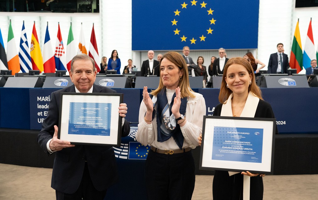 In apertura della cerimonia di consegna del premio Sacharov per la libertà di pensiero 2024, la presidente Metsola ha dichiarato: "Nella loro ricerca di giustizia, democrazia e stato di diritto, Edmundo González Urrutia e María Corina Machado sostengono senza paura i valori che sono così importanti per milioni di venezuelani e per il Parlamento europeo. Questo premio non è solo un riconoscimento, ma anche un promemoria del fatto che la lotta per la libertà non è mai vana. Il futuro del Venezuela appartiene al suo popolo e il Parlamento europeo è orgogliosamente al suo fianco."