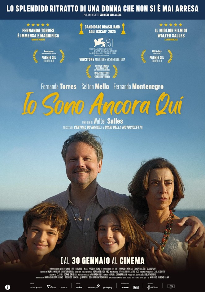 Il regista brasiliano Walter Salles, già autore, fra molte altre, di due pellicole iconiche del cinema impegnato latinoamericano, quali Central do Brasil (1998) e I diari della motocicletta (Diarios de motocicleta del 2004), ha creato con Io sono ancora qui (Ainda estou aqui, 2024) un’opera estesa ed emozionante, più volte premiata, e amichevolmente presentata, a inizio film, da un invito del regista e dell’attrice protagonista a vederlo e farlo vedere. Intento riuscito, visto che ha avuto milioni di spettatori, in patria e all’estero, e che Fernanda Torres, nella parte della moglie Eunice dell’ingegnere “desaparecido”, Rubens Paiva, ha vinto il Golden Globe 2025 come migliore attrice protagonista mentre il film è candidato a più Premi Oscar.