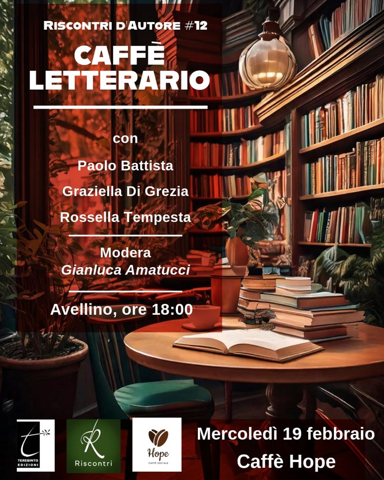 AVELLINO – La bellezza della poesia sarà al centro del nuovo appuntamento di Riscontri d’Autore #12, che si terrà mercoledì 19 febbraio, alle ore 18:00, presso il Caffè Hope di Avellino. Una nuova puntata della rassegna targata Terebinto Edizioni e Aps Riscontri, con una serata dedicata all’arte poetica che vedrà la partecipazione di tre autori: Paolo Battista, Graziella Di Grezia e Rossella Tempesta. A moderare l’incontro sarà Gianluca Amatucci, in un dialogo che metterà in luce le opere, i percorsi creativi e le riflessioni sul significato della poesia oggi.