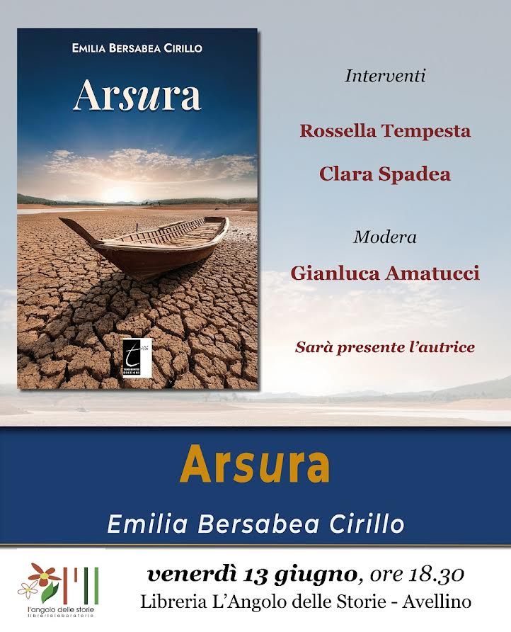Nota 11 giugno 2025, ore 10.14 - Una poesia che brucia silenziosa sotto la superficie, come la terra spaccata in attesa di pioggia. È questa la voce di Arsura, nuova raccolta di versi di Emilia Bersabea Cirillo, che sarà presentata venerdì 13 giugno, alle ore 18.30, presso la libreria L’angolo delle storie ad Avellino. L’incontro vedrà gli interventi della poetessa Rossella Tempesta e della scrittrice Clara Spadea, con la moderazione del giornalista Gianluca Amatucci. Sarà presente l’autrice.