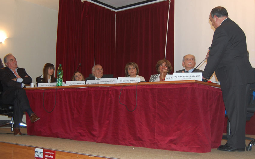 È stata, poi, la dotta relazione del professor Francesco Barra, ordinario di storia contemporanea presso l’Università di Salerno, a delineare il valore e l’importanza dell’azione di Italo de Feo esercitata non solo nel giornalismo, ma anche in altri e svariati campi che spaziano dalla storia alla letteratura, alla politica. Barra ha definito de Feo un importante testimone del Novecento quale maestro di giornalismo, padre della televisione italiana, attento e puntiglioso saggista, un divulgatore della storia e della critica letteraria. Accanto ai tanti meriti non passa in secondo piano il suo ruolo di raffinato intellettuale e grande umanista che lo accreditano nella grande schiera degli uomini che hanno avuto una formazione culturale nel seno della illuminata borghesia meridionale. La politica, ancora, ha visto in de Feo, quando questi ha aderito al Pci di Togliatti, il vero spirito libertario.