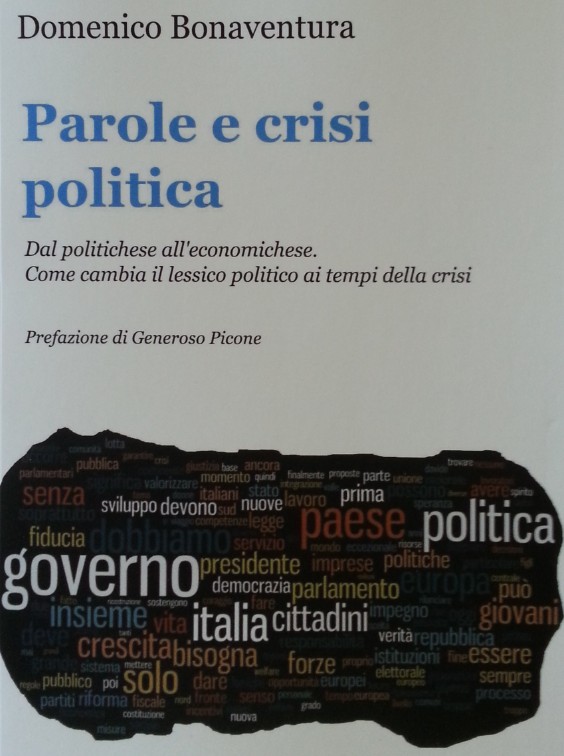 Il volume di Bonaventura “analizza – si legge in un comunicato – il mutamento del lessico utilizzato nella comunicazione politica, mutamento avvenuto a causa di una crisi che ha prodotto sconvolgimenti in tutti i settori, anche in quello linguistico. L’autore parte però dal legame eterno tra media e politica, che viene scandagliato nelle sue varie fasi storiche. Successivamente, si sofferma su un periodo storico che individua come fondamentale nel cambiamento lessicale: la caduta di un governo politico e il giuramento di un esecutivo tecnico. Il 16 novembre 2011 è individuata come la data-cardine per la realizzazione di questo processo linguistico-cultural-sociale. È il giorno del giuramento dell’esecutivo Monti e da quel momento, nell’azione del governo, cambiano le priorità, che diventano solo e soltanto di tipo economico-finanziario. Insieme ad esse muta anche il vocabolario utilizzato da politici e media per argomentare: la morte del politichese, così come l’avevamo conosciuto, avviene per mano di un lessico esclusivamente economico. Sullo sfondo, il potere dei media, che accolgono il nuovo lessico e lo impongono all’opinione pubblica. Il libro riporta in appendice un mini-vocabolario di 146 termini “in voga” nel periodo citato e affrontati (con relativi esempi) nel corso degli 8 capitoli”. Il libro è autoprodotto dall’autore attraverso ilmiolibro.it.