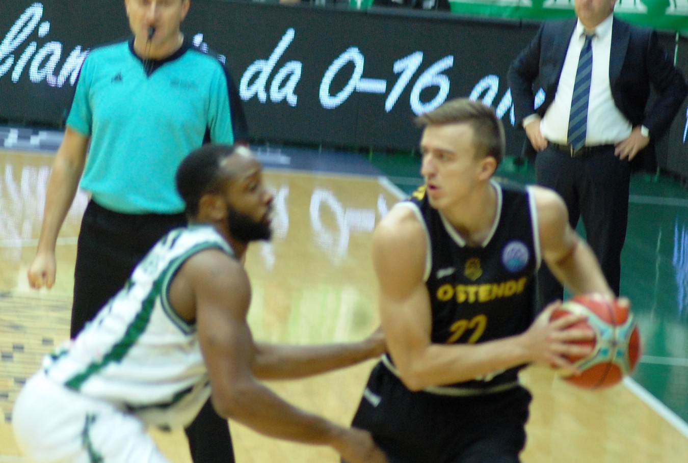 Note: parziali 18/27 - 35/33 - 49/46. Tiri liberi: Sidigas 5/5, Oostende 15/21. Tiri da due punti: Sidigas 20/34, Oostende 15/38. Tiri da tre punti: Sidigas 7/26, Oostende 4/16. Rimbalzi: Sidigas 33, Oostende 35.