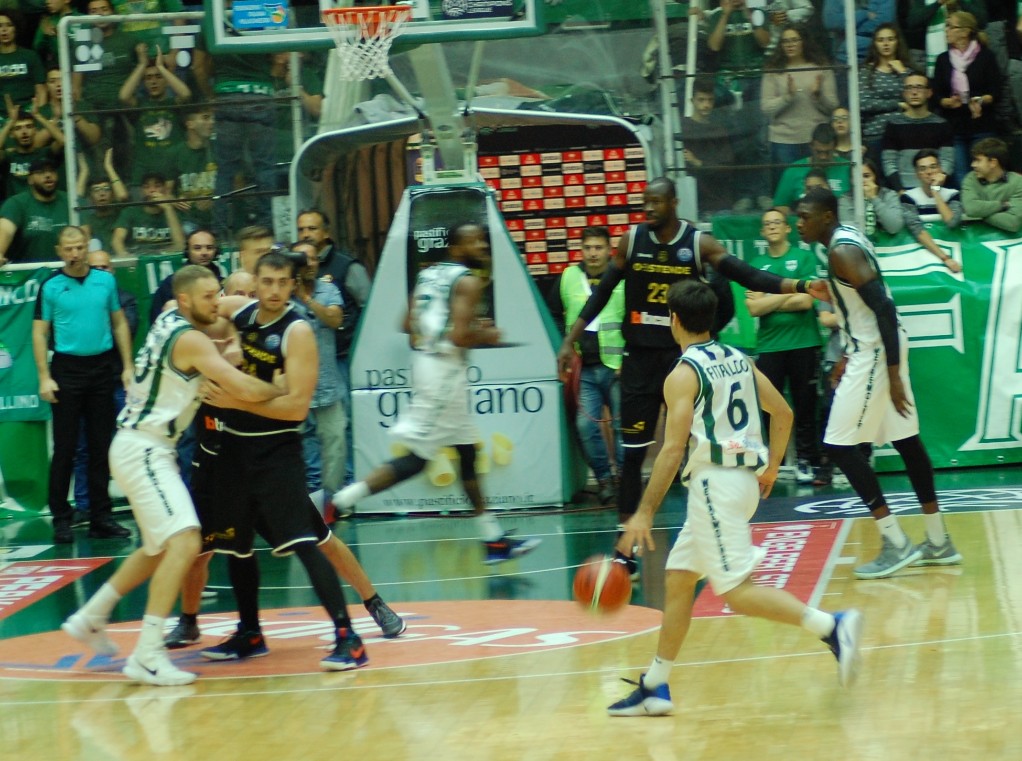 Ne è venuta fuori una partita spigolosa, a volte aspra ma sempre corretta, con la Sidigas che inizialmente è stata costretta a rincorrere nei primi 10' (18/27), grazie anche al dominio a rimbalzo degli ospiti (4 a 13), favoriti dall'assenza di Fesenko, che in settimana potrebbe essere momentaneamente sostituito da Ortner con ingaggio a gettone. Nel secondo periodo Avellino alza l'intensità della difesa, costringendo gli avversari a secco nei primi 7', e piazzando un break di 15 a 0 che consente di recuperare il distacco ed operare il sorpasso (33/27 al 17'). Le squadre vanno al riposo lungo sul 35 a 33, poi all’inizio della terza frazione Jekiri impatta a quota 35, ma è ancora Avellino ad allungare sul 49 a 40 del 28'. I belgi non demordono e riescono a chiudere la terza frazione con un solo possesso di distacco (49/46). Le triple di Scrubb e Wells sono utili per il nuovo allungo della Sidigas (55/46 al 33'), che deve però subire il ritorno degli ospiti guidati da Salumu (55/51 al 34'). Le squadre appaiono stanche e sbagliano tantissimo, la partita sembra chiusa sul 61 a 54 quando manca 1’02” al termine, ma poi Fitipaldo perde palla, scivola colpendo Djordjevic lanciato a canestro, ed arriva l'antisportivo che poteva costare caro. Nel finale, però, Avellino è più lucida, trova punti da N’Diaye e la tripla di Leunen che fissa il punteggio finale sul 66 a 57.