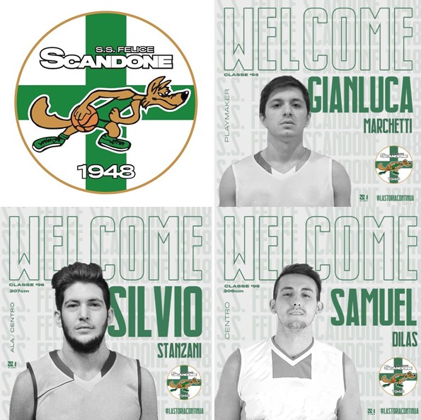 AVELLINO – La S.S. Felice Scandone Avellino comunica di aver ingaggiato, fino al termine della stagione 2019/2020, il playmaker italiano Gianluca Marchetti, il centro italiano Silvio Stanzani e l’ala/centro italiana Samuel Dilas.