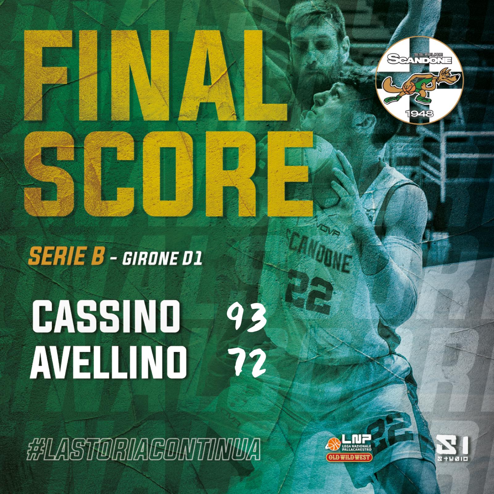 Finisce con una sconfitta, la nona della stagione, la fase regolare della Scandone battuta in trasferta dalla Virtus Cassino per 93 a 72. Gli irpini sono rimasti in partita per una quindicina di minuti, prima di soccombere di fronte ad avversari non trascendentali, che però hanno sbagliato di meno, ed hanno trovato una buona serata nel tiro da tre punti (12/29), fondamentale nel quale la Scandone ha raccolto un misero 3/28, dopo aver chiuso i primi due periodi con uno 0/13.