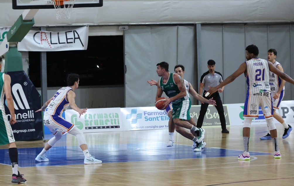 Monopoli ad inizio quarto scappa sul +9 grazie alla tripla frontale di Spatti e per i lupi inizia a farsi dura. Nel momento più difficile gli irpini mettono a segno un parziale di 10-0 firmato Pichi, Jaskus, Stefanini e ritorna a comandare la gara quando mancano 90 secondi al termine del match. Spatti perde una palla sanguinosa dopo l’uscita dal time out. Trapani fa 2/2 ai liberi e manda a +3 i biancoverdi ad otto secondi dalla fine. La tripla di Vitale viene sputata dal ferro ed Avellino, così, sbanca la Tendostruttura di Monopoli con il punteggio di 54-57 e accede alla finale per la promozione in B Nazionale contro Piazza Armerina.
