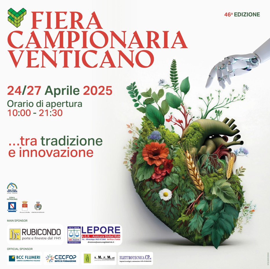 Questa edizione della Fiera Campionaria di Venticano gode del patrocinio dell'Istituto nazionale per l'assicurazione contro gli infortuni sul lavoro, della Regione Campania, della Provincia di Avellino e, chiaramente, del Comune di Venticano. L’inaugurazione è in programma il 24 aprile alle 9.00.