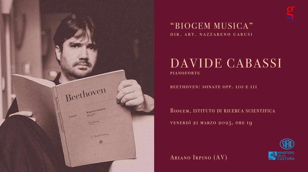 Torna, quindi, a Biogem Musica, lo strumento per eccellenza, il pianoforte, suonato da un pianista e didatta, Davide Cabassi, al vertice della fama internazionale per le sue qualità interpretative soprattutto rivolte a Beethoven. Stima estesa al suo impegno nel sociale, sfociato, tra l’altro, nell’ideazione della stagione concertistica ‘Primavera di Baggio’, volta a valorizzare e rilanciare culturalmente la periferia della sua città.