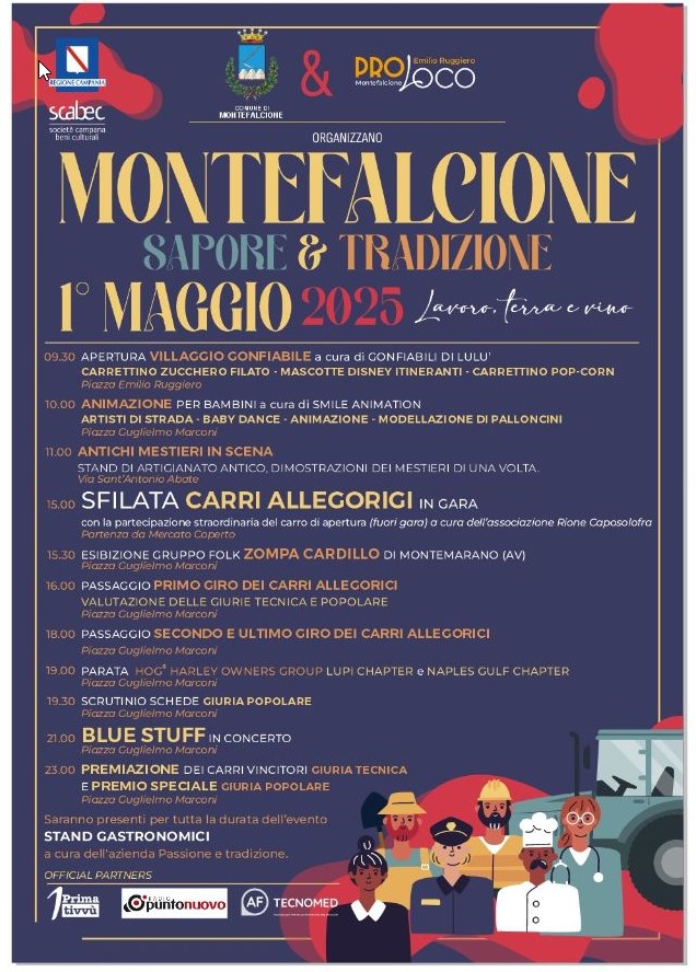 MONTEFALCIONE – Il Comune di Montefalcione e la Proloco “Emilio Ruggiero” di Montefalcione nella giornata del primo maggio organizzano “Montefalcione sapore e tradizione”. Torna dunque un appuntamento “storico” per il Paese, una giornata all’insegna del folklore e della tradizione.