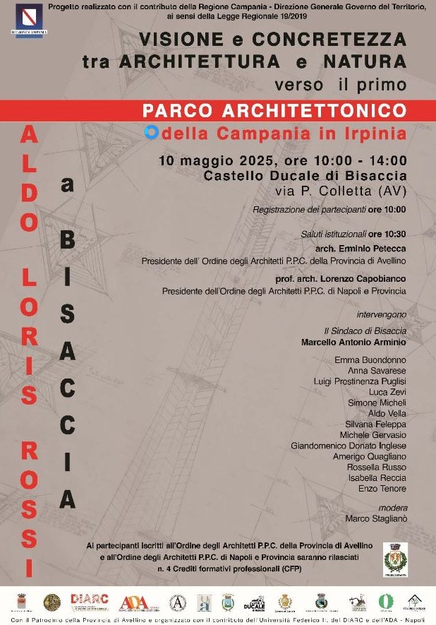 BISACCIA – L’Ordine degli architetti della provincia di Avellino è lieto di annunciare l’evento “Visione e concretezza tra architettura e natura – verso il primo Parco Architettonico della Campania in Irpinia”, che si terrà sabato 10 maggio, a partire dalle ore 10:00, presso lo storico castello ducale di Bisaccia.