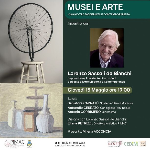 MONTORO – Giovedì 15 maggio 2025, alle ore 19:00, a Montoro presso la PiMac - Pinacoteca d’Arte contemporanea Città di Montoro, in piazza Maggiore V. Citro, incontro pubblico con Lorenzo Sassoli de Bianchi.