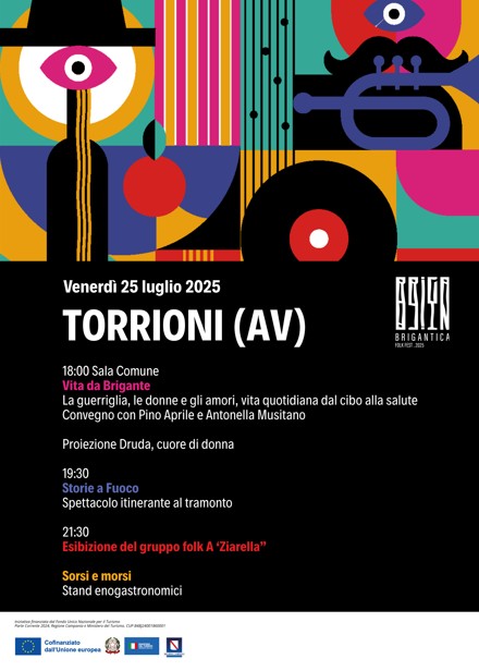 Venerdì 25 luglio, a partire dalle ore 18:00, Torrioni si trasforma nel palcoscenico d'apertura di un percorso emozionante, dove storia e festa si intrecciano in un'unica serata ricca di esperienze. Il festival si apre, infatti, con un appassionante convegno che intreccia storia e ribellione, guidato dalla voce autorevole dello scrittore e giornalista Pino Aprile insieme alla ricercatrice Antonella Musitano.