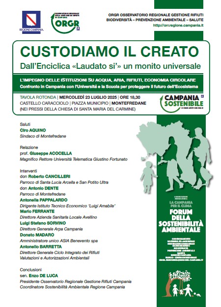 Dopo i saluti del sindaco Ciro Aquino ci sarà la relazione di Giuseppe Acocella, rettore dell’università telematica Giustino Fortunato. Sono quindi previsti gli interventi di don Roberto Cancilleri parroco di Santa Lucia di Arcella e San Potito Ultra, don Antonio Dente parroco di Montefredane, Antonella Pappalardo dirigente istituto tecnico economico “Luigi Amabile”, Mario Ferrante direttore Azienda sanitaria locale Avellino, Luigi Stefano Sorvino direttore generale Arpa Campania, Donato Madaro amministratore unico Asia Benevento, Antonello Barretta direttore generale ciclo integrato dei rifiuti valutazioni e autorizzazioni ambientali.