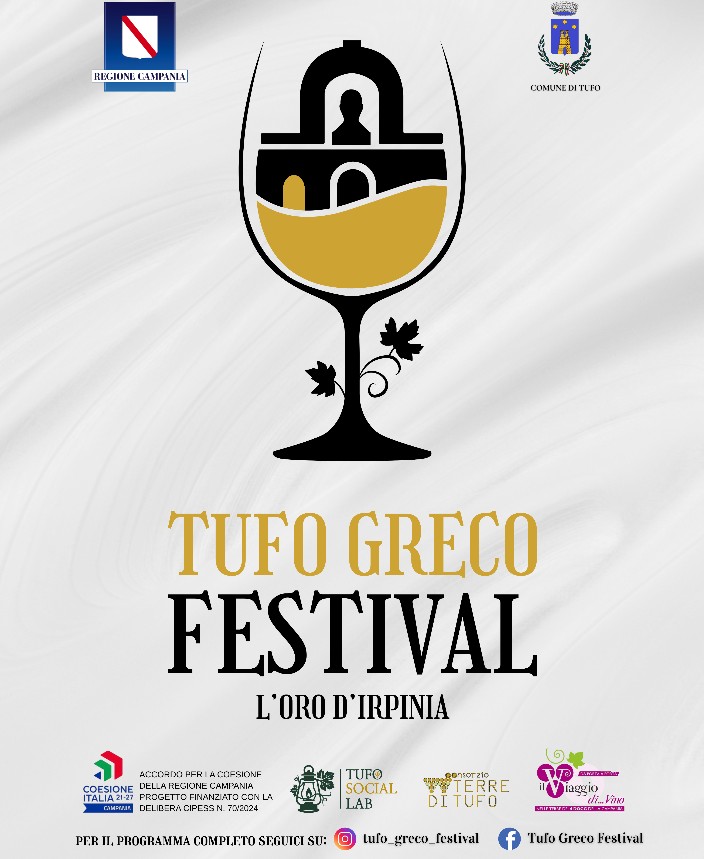 TUFO – Tutto pronto per il Tufo Greco Festival: dal 5 al 7 Settembre, il suggestivo borgo di Tufo, patria del celebre Greco di Tufo Docg, si trasformerà in un palcoscenico a cielo aperto dove enogastronomia, cultura e musica si incontreranno per celebrare l’anima più autentica dell’Irpinia.