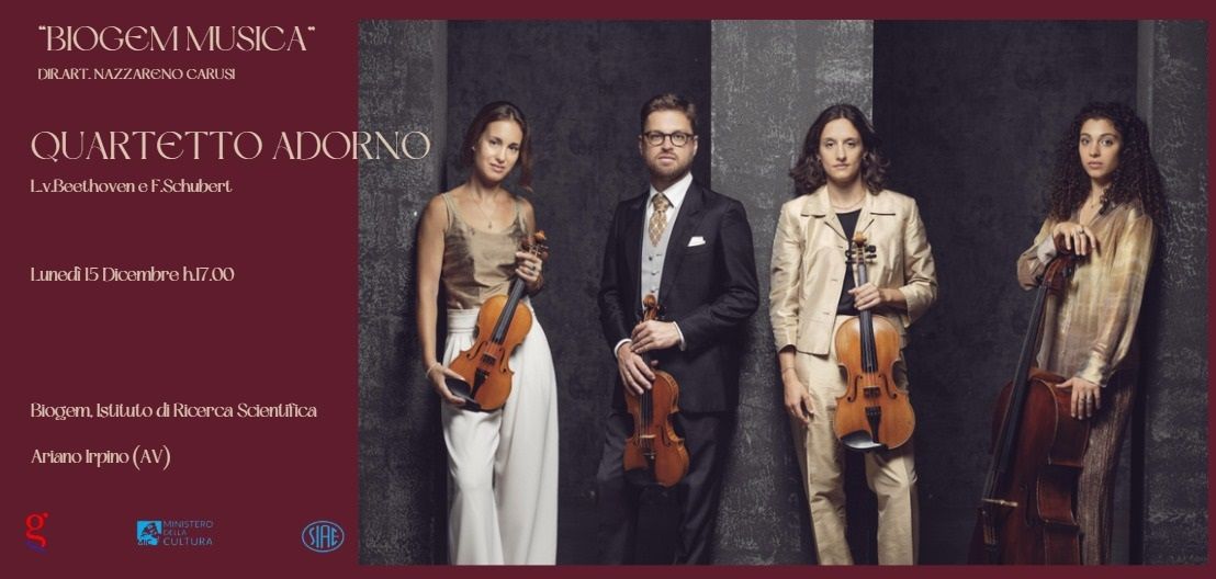 Il quartetto Adorno offrirà al pubblico di Biogem musiche di L.v. Beethoven a F. Schubert.