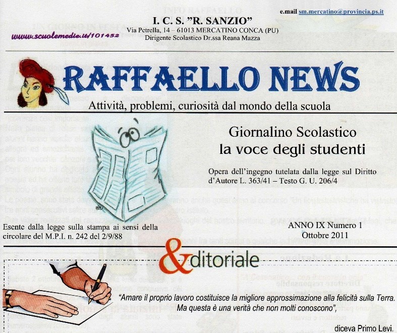 Primo classificato è risultato il giornalino “Raffaello news” (nella foto) dell’I.C. “Raffaello Sanzio” di Mercatino Conca (Urbino). Il secondo premio è andato al periodico "Scuole in rilievo" dell’ I. C. "Lusiana" di Crosara di Marostica (Vicenza). Terzo premio a "Kennedy news”. La scuola in prima pagina" – I. C. "J. F. Kennedy" - Cusano Mutri (Benevento). Al quarto posto si è classificato il periodico “Mediamente telegiornale” – I.C. “M. Buonarroti” di Torricelli (Taranto).