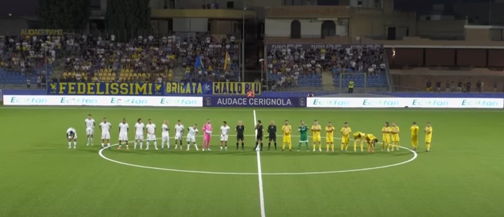 AUDACE CERIGNOLA (3-5-2): Greco; Visentin, Martinelli, Ligi; Russo (40' st Ingrosso), Coccia (24' st Ruggiero), Bianchini, Petrella, D'Orazio (24' st Spaltro); Cuppone (41' st Sainz Maza), Emmausso (9' st Faggioli). A disposizione: Rizzuto, Fares, Sabbatani, Ballabile, Giuliodori, Arjona, Cocorocchio, Parlato. Allenatore: Maiuri.