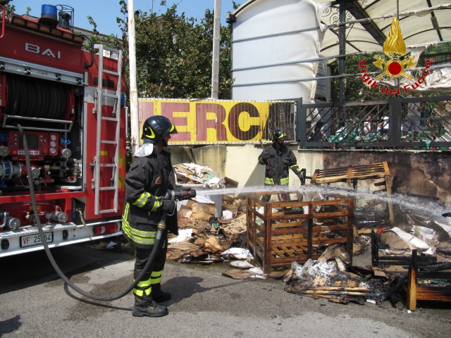 PAGO DEL VALLO DI LAURO – In fiamme un deposito di cartoni e pedane di un supermercato di Pago Vallo Lauro, in via Nazionale. Sul posto, per spegnere le fiamme che avevano incominciato a lambire la struttura creando attimi di paura per i clienti che si trovavano all’interno, una squadra dei vigili del fuoco di Avellino, peraltro da poco liberatasi da un altro intervento effettuato sulla Napoli-Canosa. I caschi rossi hanno provveduto a bonificare l’area interessata dall’incendio che, per la verità, già il proprietario del supermarket aveva iniziato a spegnere.