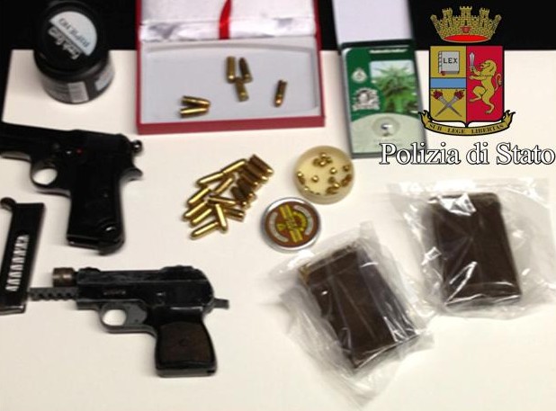 AVELLINO – È stato arrestato per detenzione di sostanze stupefacenti D.R.V., un irpino di 43 anni, fermato per un controllo dagli agenti della squadra mobile mentre si trovava a bordo di una Hunday Matiz. Dopo un’attenta perquisizione gli agenti, insospettiti anche dall’eccessivo nervosismo dell’uomo, hanno rinvenuto negli indumenti intimi due panetti cellofanati di hashish del peso di 200 grammi. Inoltre, a seguito di successiva perquisizione presso la sua abitazione, i poliziotti hanno accertato la detenzione illegale di 28 proiettili calibro 7,65mm e di una pistola lanciarazzi che venivano debitamente sequestrati. Sottoposta a sequestro amministrativo, in attesa dell’emissione da parte della prefettura del decreto di divieto di detenzione di armi e munizioni, anche una pistola calibro 7,65 legalmente detenuta.