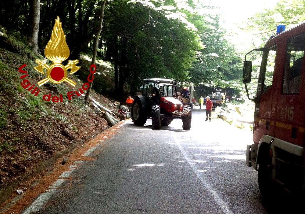 Il lavoro di rimozione e di messa in sicurezza della zona, coordinato da carabinieri e vigili del fuoco, in collaborazione con boscaioli, Protezione civile, operai della Provincia e vigili urbani, si è protratto dalle 7.00 di questa mattina fino alle 12.30.
