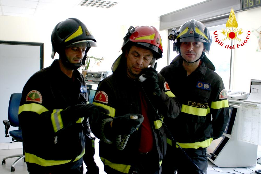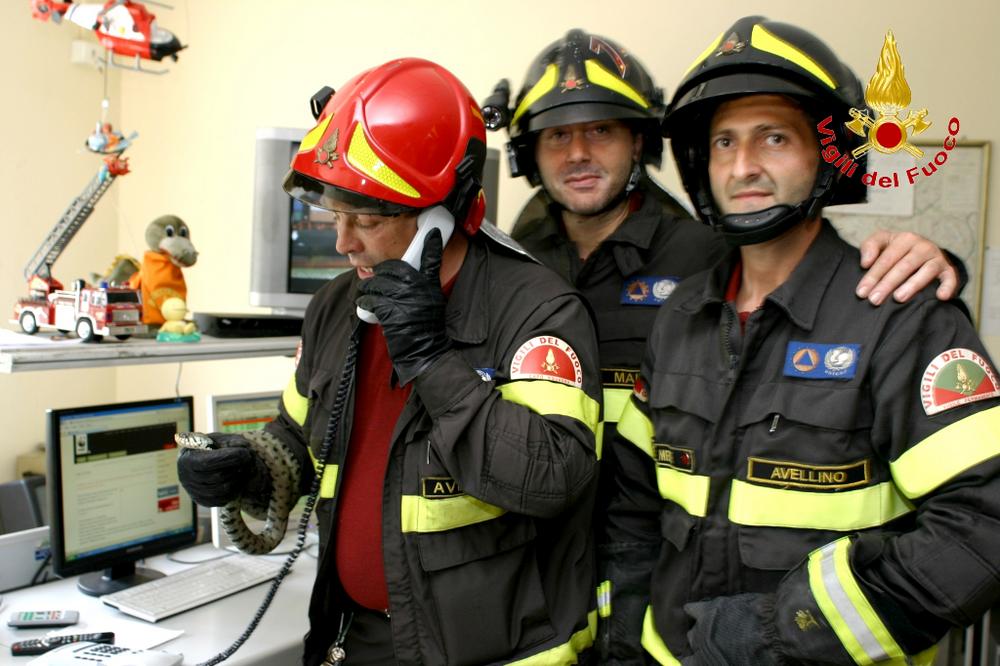 AVELLINO – Un grosso esemplare di natrice, un rettile, come dice il nome, acquatico dal tronco appiattito e dalla coda breve, è stato catturato, poco dopo le 15.00 di oggi, da una squadra dei vigili del fuoco di Avellino, sulla SS 7 bis, la variante, a non molta distanza dalla centrale operativa di contrada Quattrograne. A dare, per così dire, l’allarme è stato un cane il cui insistente abbaiare ha attratto l’attenzione di più di un automobilista in transito in direzione Torrette: chiesto l’intervento dei caschi rossi. Un po’ di lavoro straordinario per questi ultimi in quanto per recuperare la biscia hanno dovuto arrampicarsi su di un albero su cui l’animale aveva trovato riparo. Subito dopo l’esemplare che risulta protetto, dopo le prime cure ricevute in caserma, è stato consegnato agli operatori del Wwf di Conza della Campania.