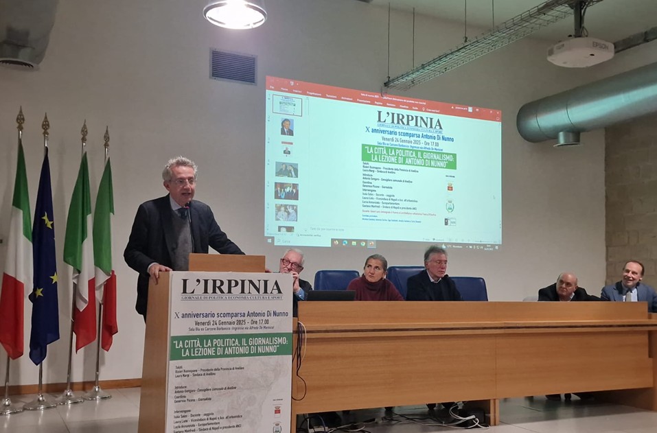Ad introdurre i lavori, coordinati da Generoso Picone, è stato Antonio Gengaro, che di Di Nunno fu il vicesindaco: «I temi che poneva Tonino da sindaco, da politico, da giornalista, sono ancora drammaticamente attuali, lo dico alla nostra sindaca Laura Nargi. Tonino si occupava più di dieci anni fa della questione dei trasporti, il trasporto su ferro era considerato l’elemento fondamentale per far uscire Avellino dall’isolamento e farla collegare alle grandi direttrici dello sviluppo, in direzione Salerno con la stazione logistica a mare, con Benevento e, perché no, con Afragola.