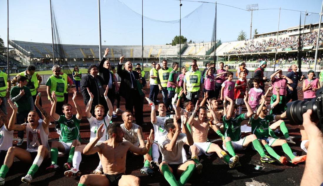 Ripresa. L’Avellino subito in avanti con l’intento di sorprendere la difesa nerazzurra. Ma è l’Andria che al 6’ st si rende pericoloso con il proprio capitano Larosa che colpisce di testa un pallone proveniente dal’angolo. È un fuoco di paglia perché il pallino è in mano agli uomini Rastelli che imprimono al loro gioco una maggiore intensità e continuità raccogliendone i frutti al 9’ st: Tartaglia commette fallo in area da ultimo uomo Castaldo, l’arbitro Paolini concede senza esitazione il rigore ed espelle il centrale difensivo pugliese. L’esecuzione del penalty è dello stesso Castaldo che spiazza Rossi. 1-0 per l’Avellino che sembra essersi sbloccato dopo un primo tempo piuttosto incolore. Cerca di mischiare le carte l’allenatore ospite Cosco facendo entrare Liccardo al posto di D’Errico. L’Andria prova a reagire ma tutto sommato l’Avellino, a parte qualche uscita fuori tempo del portiere Di Masi che crea qualche palpitazione sugli spalti, non corre seri pericoli. Al 22’ lo stadio esulta per la notizia che arriva da Viareggio: il Perugia, il più immediato inseguitore della squadra irpina, è sotto di un gol. Ora sono di nuovo cinque le lunghezze di vantaggio dei bianco verdi sugli umbri. A suggellare il risultato al 27’ st arriva il raddoppio dell’Avellino: De Angelis tira di sinistro dal limite dell’area, sembra il suo un tiro innocuo, ma il portiere Rossi, pur brillante in almeno altre due occasioni, si lascia passare la palla tra le gambe. Due minuti dopo terzo gol ad opera di Zigoni che approfitta di retropassaggio sbagliato di De Giorgi al proprio portiere riuscendo a toccare la palla di quel tanto che basta per farla rotolare lentamente in rete. Sul 3-0 sugli spalti inizia la festa da parte dei tifosi che esultano e che vedono la serie B sempre più vicina. Al 38’ st il giovane Herrera subentrato a Castaldo potrebbe rimpinguare il bottino portando a quattro i gol dell’Avellino ma il suo tiro è fuori. La gara si avvia alla fine, ma nei quattro minuti di recupero concessi dall’arbitro riserva ancora una gioia ai tifosi irpini: Zappacosta si libera sulla destra e fa partire un gran tiro di sinistro che s’infila nel set della porta avversaria.