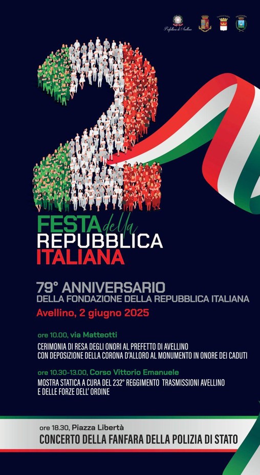 AVELLINO – La prefettura di Avellino celebra il 79° anniversario della Festa della Repubblica con una serie di iniziative in programma per l’intera giornata del 2 giugno p.v.