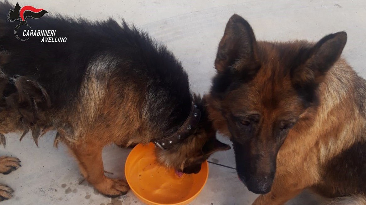 MUGNANO DEL CARDINALE – Sabato mattina, grazie alla segnalazione di un cittadino, una pattuglia dell’aliquota radiomobile della compagnia dei carabinieri di Baiano è intervenuta a Mugnano del Cardinale, in località Calabricita. Qui i militari dell’Arma hanno trovato due cani di razza pastore tedesco in condizioni critiche, visibilmente denutriti e disidratati.