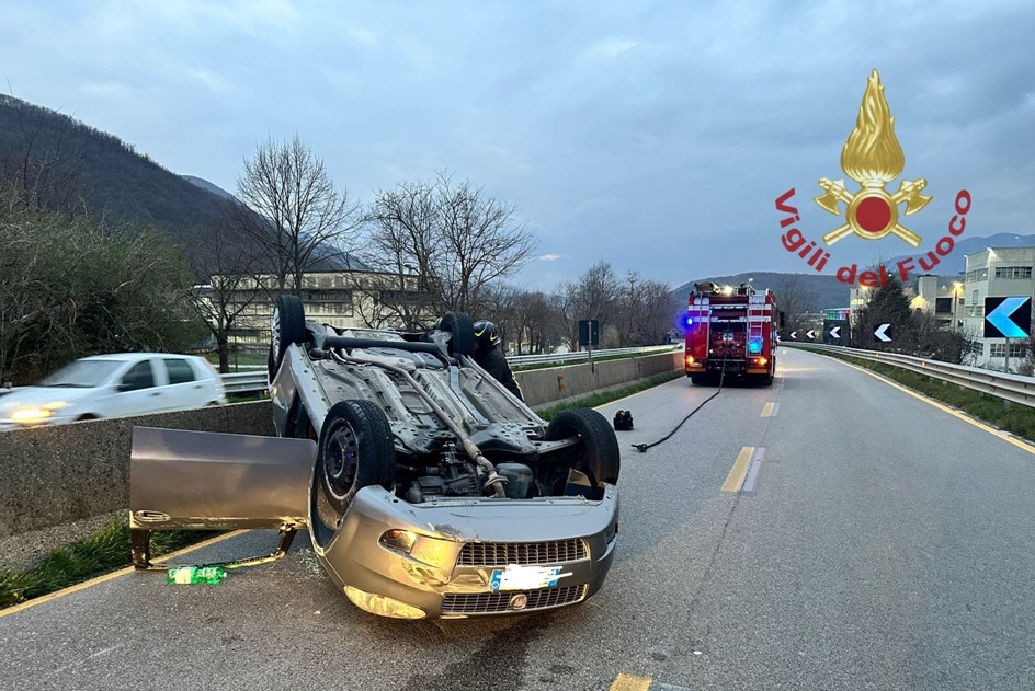 SOLOFRA – Alle ore 18:00 circa di questa sera i vigili del fuoco del comando di Avellino sono intervenuti lungo il raccordo autostradale Avellino-Salerno, in direzione Salerno, in territorio del Comune di Solofra, per un incidente che ha coinvolto un'auto capovolta.