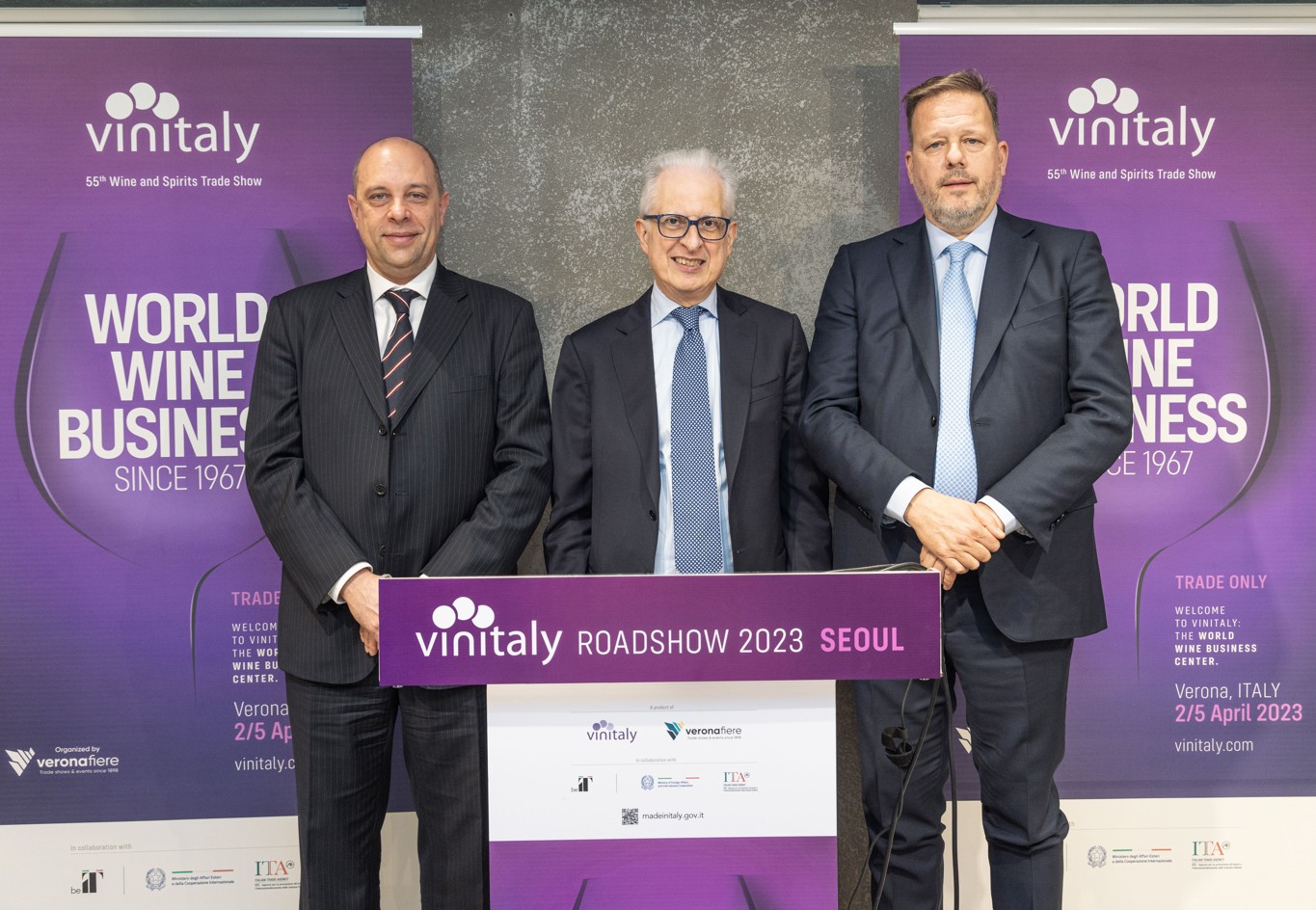 Per Ferdinando Gueli, direttore Ice-Agenzia ufficio di Seoul: “Il crescente successo del consumo di vino in Corea ha determinato in questi ultimi anni un andamento molto positivo per il nostro export, come dimostrano i recenti dati che ci indicano un raddoppio sia in valore che in quantità avvenuto in meno di 3 anni. Questo trend ci incoraggia ad esplorare modalità innovative di promozione come l'idea di proporre l'abbinamento del vino italiano ai cibi della tradizione culinaria coreana, che abbiamo condiviso con i partner di Vinitaly con l'obiettivo di aprire nuovi ed inesplorati spazi di mercato per i nostri produttori”.