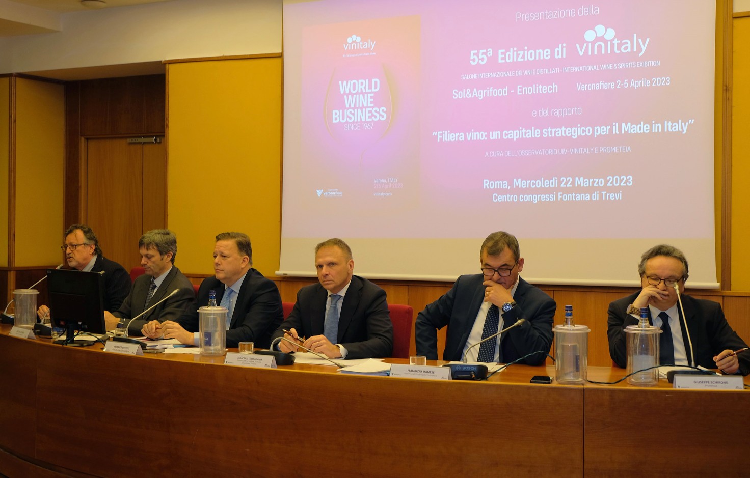 L’edizione 2023 del salone internazionale dei vini e dei distillati organizzato da Veronafiere è stata presentata oggi a Roma da Federico Bricolo, presidente di Veronafiere SpA, e Maurizio Danese, amministratore delegato di Veronafiere SpA. Alla conferenza stampa sono intervenuti anche Francesco Lollobrigida, ministro dell'Agricoltura, Sovranità alimentare e Foreste, Matteo Zoppas, presidente di Ice-Agenzia, Giuseppe Schirone, economista e manager di Prometeia, e Carlo Flamini, wine observatory manager di Unione Italiana Vini.