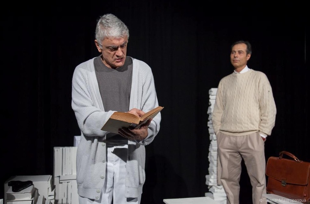 I due attori in scena, Gianni Caputo e Mario Troise, mettono in scena la pièce scritta da Schmitt nel 1995 che prende spunto da un’opera sinfonica del compositore inglese Edward Elgar, “Enigma