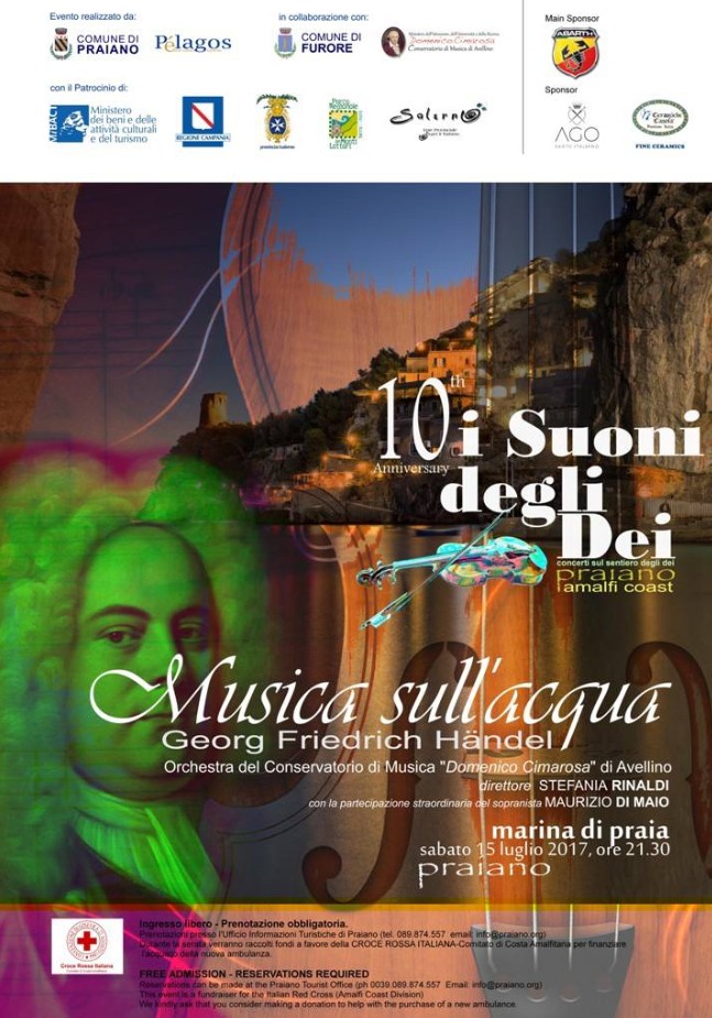 Sabato 15 luglio, alle 21.30, il Conservatorio «Cimarosa», presieduto da Luca Cipriano e diretto da Carmine Santaniello, sarà ospite d’onore del Comune di Praiano, per celebrare i trecento anni dal «Concerto sull'acqua» sul fiume Tamigi a Londra, commissionato da re Giorgio I a Georg Friedrich Händel. Per l’occasione – si legge in un comunicato – il Comune di Praiano ha concordato con il Conservatorio di Avellino una location d’eccezione: per il concerto, infatti, sarà costruita una grande piattaforma galleggiante, ancorata a 10 metri dalla battigia, che ospiterà l'orchestra sinfonica del «Cimarosa», diretta da Stefania Rinaldi, docente del Conservatorio avellinese e direttrice del coro di voci bianche del Teatro San Carlo di Napoli.
