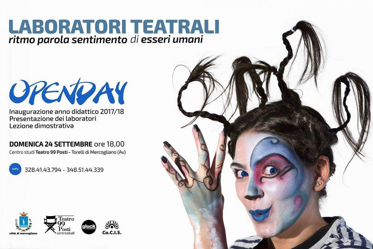 MERCOGLIANO – Domenica 24 settembre, dalle 18 alle 19,30, il Teatro 99Posti, in via Traversa a Torelli di Mercogliano, darà avvio ai laboratori teatrali 2017/18 “Ritmo-parola-sentimento di esseri umani da 0 a 99 anni”.