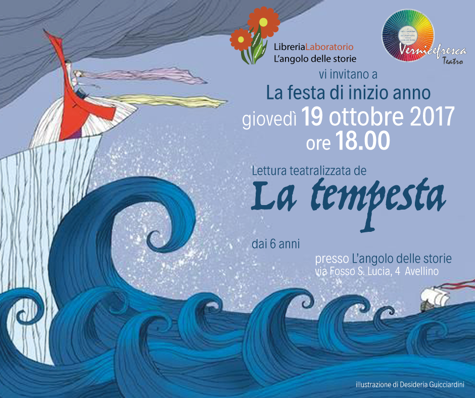 AVELLINO – Presso la libreria L'angolo delle storie, Vernicefresca Teatro, con Francesca Niespolo e Arianna Ricciardi, inaugura il nuovo anno di attività. Continua senza interruzioni la collaborazione tra L'angolo delle storie e Vernicefresca Teatro che per questo evento hanno realizzato una lettura teatralizzata liberamente tratta dall'adattamento de La tempesta di Alba Meo, dal capolavoro di Shakespeare.