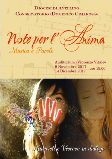 «Note per l’anima è una iniziativa che nasce da un progetto di collaborazione tra la nostra Diocesi e il Conservatorio “Cimarosa” – spiega il vescovo di Avellino, mons. Arturo Aiello – una sorta di “sonata a quattro mani” che vede in campo artisti (docenti ed alunni) del prestigioso Conservatorio ed il vescovo. Di cosa si tratta? Di musica dal vivo e meditazione alternati, impastati, armonizzati, per adulti alla ricerca di un’oasi dove cultura e fede comunicano e si danno la mano. Nella corsa folle dove siamo lanciati ogni giorno dove conta solo ciò che è utile, immediatamente fruibile e da consumare in fretta, “Note per l’anima” si pone in controcorrente come sosta salutare tesa a far ritrovare se stessi nell’utilità dell’inutile: l’arte. Una sorta di scavo per ritrovare falde di “chiare fresche e dolci acque” cui dissetarci in un momento di incanto dove la bellezza ci viene incontro da uno spartito, da un verso, da una parola o semplicemente da una pausa. Ringrazio di cuore le autorità accademiche ed amministrative del nostro Conservatorio che, con disponibilità ed entusiasmo, hanno subito raccolto e condiviso il sogno di una collaborazione artistico-spirituale a beneficio di chi vorrà aderirvi. “Note per l’anima” è il piacere di riscoprire i sensi interiori percorrendo la via della bellezza in un tempo dove si esalta solo l’effimero, il tentativo di dare un supplemento d’anima alla città o di riscoprire la città dell’anima che è dentro di noi e che Italo Calvino chiamava “Città sottili”».