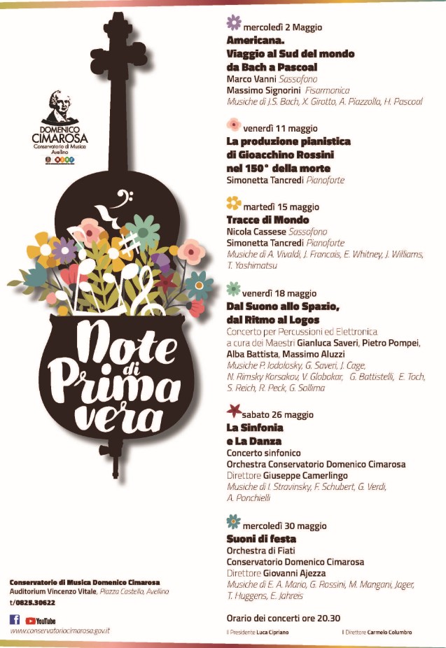 «Sei concerti per festeggiare la Primavera nel segno della musica del Conservatorio “Domenico Cimarosa”. Nel mese di maggio prende il via una nuova rassegna sulle note dei più grandi