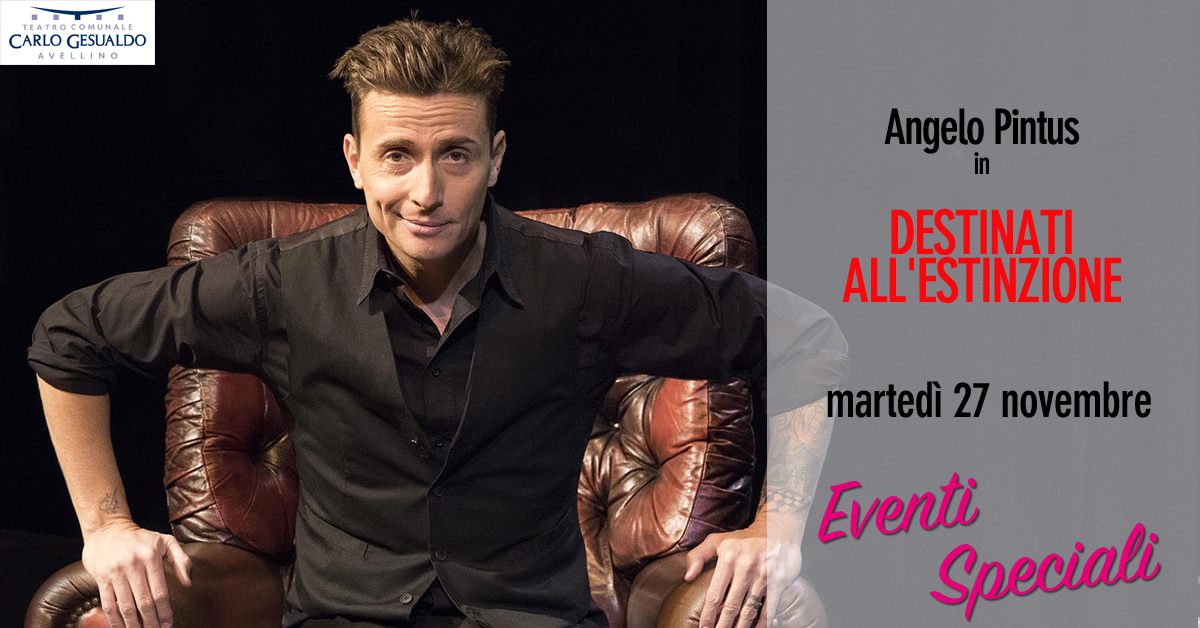 AVELLINO – Tanto divertimento ma anche un tema sul quale riflettere. Sono questi gli ingredienti principali del nuovo one man show di Angelo Pintus, in programma martedì 27 novembre al Teatro “Carlo Gesualdo” di Avellino, dal titolo “Destinati all'estinzione”. Uno spettacolo esilarante, ispirato alle piccole e grandi smanie dei nostri tempi, che promette risate a crepapelle su un argomento per certi versi anche molto serio. L'appuntamento sarà anche il primo dei tre “Eventi speciali” fuori abbonamento della stagione 2018-2019 del Massimo del capoluogo irpino.