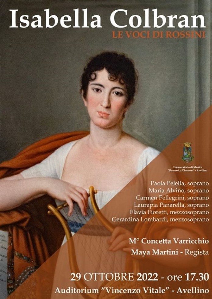 AVELLINO – Un «après-midi musical», sabato 29 ottobre 2022, alle ore 17.30, presso l’auditorium «Vincenzo Vitale» del Conservatorio di Avellino, dove andrà in scena «Isabella Colbran, le voci di Rossini».