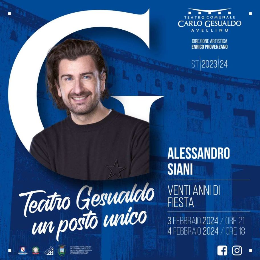 Sabato 3 (alle ore 21) e, in replica, domenica 4 febbraio (alle ore 18) il Teatro “Carlo Gesualdo” riabbraccia Alessandro Siani protagonista di “20 anni di Fiesta!”, lo show dei record che celebra i primi 20 anni, appunto, di uno dei suoi show teatrali più fortunati e longevi.