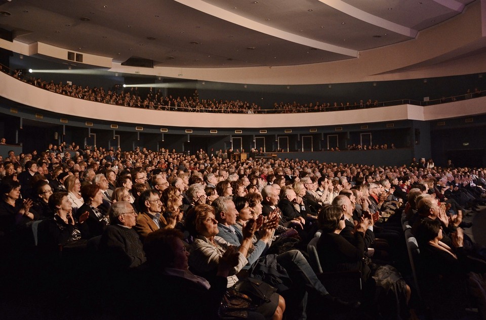 AVELLINO – Grande pubblico e grandi emozioni ieri sera al teatro Carlo Gesualdo per la prima delle due serate con Renzo Arbore e la sua Orchestra italiana. Sono state circa tre ore intense di grande musica nel corso delle quali lo showman pugliese ha riproposto alla platea avellinese “i più grandi successi della musica napoletana contaminata dalle sonorità del rock, del blues, del country, fino ad arrivare a toccare i ritmi tipici della musica reggae e di quella sudamericana. Renzo Arbore, grande appassionato di tutta la musica e profondo estimatore della canzone napoletana classica, ha portato sul palcoscenico irpino il sound inconfondibile della sua Orchestra italiana fatta di chitarre, mandolini, percussioni, fisarmoniche e tastiere, partendo dal modello un po’ naif delle orchestre napoletane, quelle dei primi del ’900, dove le voci ricche di pathos dei cantanti si sposavano con i ritmi coinvolgenti delle strade di Napoli”.