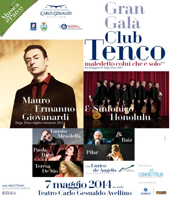 AVELLINO – «Con l’arrivo di questi grandi artisti, che si esibiranno sul palcoscenico a stretto contatto con il pubblico del “Gesualdo”, parte ufficialmente la quarta stagione estiva di Musica al parco organizzata dall’Istituzione Teatro Comunale. Una scommessa che negli anni abbiamo deciso di affrontare e che abbiamo vinto trasformando Avellino e il suo teatro in un punto di riferimento per la grande musica jazz internazionale. Anche quest’anno proporremo un cartellone di qualità che nei prossimi giorni sarà ufficializzato e che di sicuro saprà registrare il gradimento del nostro pubblico». È quanto dichiara Luca Cipriano, presidente dell’Istituzione teatro comunale, che questa mattina ha preso parte, insieme con Salvatore Gebbia e Carmine Santaniello, componenti del consiglio d'amministrazione, Luciano Moscati, presidente dell'associazione "I Senzatempo" e Aldo Binosi, presidente Confiditalia, alla conferenza stampa di presentazione del Gran Gala Club Tenco in programma il prossimo 7 maggio, alle 21.00, al Carlo Gesualdo di Avellino.
