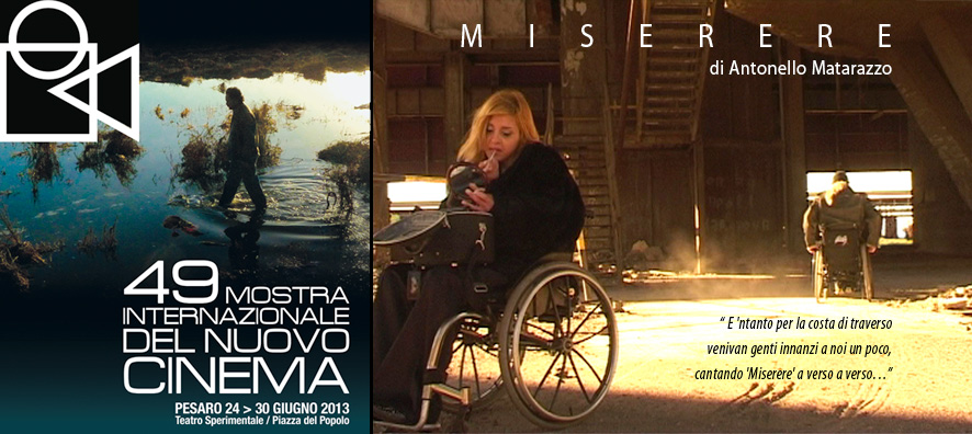 AVELLINO – Da Roma, dove all’Art Doc Fest presieduta da Carlo Fuscagni e giunta alla II edizione, ha ottenuto il primo premio nella sezione “Nuovi linguaggi” per "una intelligente contaminazione tra i linguaggi della musica, dell'architettura e del teatro in un filmato intenso e scioccante ambientato in un paesaggio sospeso" [...] a Pesaro, dove, in occasione della 49° mostra internazionale del Nuoco cinema, in programma dal 24 al 30 giugno, sarà presentato al 27° evento speciale “fuori norma” dedicato alla via sperimentale del cinema italiano, il Miserere (cantus) di Antonello Matarazzo, videomaker avellinese con alle spalle già una serie di prestigiosi riconoscimenti per le sue opere, anche al di fuori dei confini nazionali, è destinato a originare emozioni e suggestioni che, al di là della forte partecipazione che suscitano nel pubblico per il tema trattato, che è quello della disabilità motoria, affondano le radici in un’ispirazione che è più vicina alla poesia ed alla dimensione lirica che non al mero fatto tecnico legato alla semplice realizzazione di un filmato.