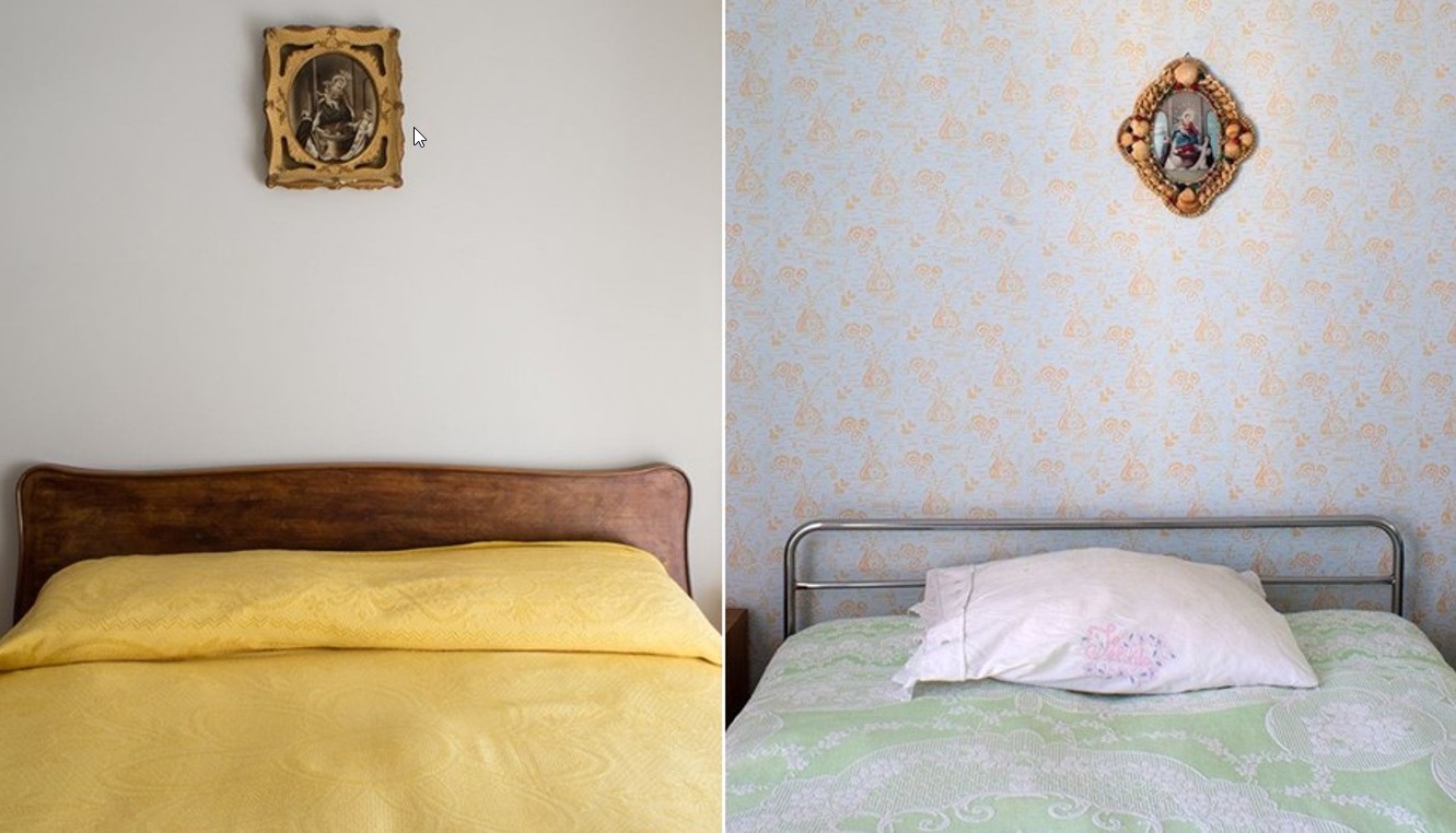 Nel mio immaginario – prosegue l’autore – la custodia del sacro canone della famiglia, della sua prosecuzione, la certezza fideistica in un futuro tanto di procreazione quanto di morte si rende tangibile in queste stanze intime e riservate, che divengono altari: la camera da letto è alcova e sudario, culla di chi è generato e terreno di chi è giunto alla fine in un rito circolare che ripropone il ciclo dell'esistenza». «Dismesso il valore ponderale che le generazioni precedenti assegnavano alla camera da letto – conclude il fotografo sannita – il ciclo si spezza, la storia si perde, la memoria si volatilizza. Ritrovare santuari così vetusti e intatti mi ha impegnato in una non facile ricerca che ha prodotto Altari: il mio saluto, probabilmente un addio, agli dei Lari e a tutto ciò che essi non potranno più rappresentare».