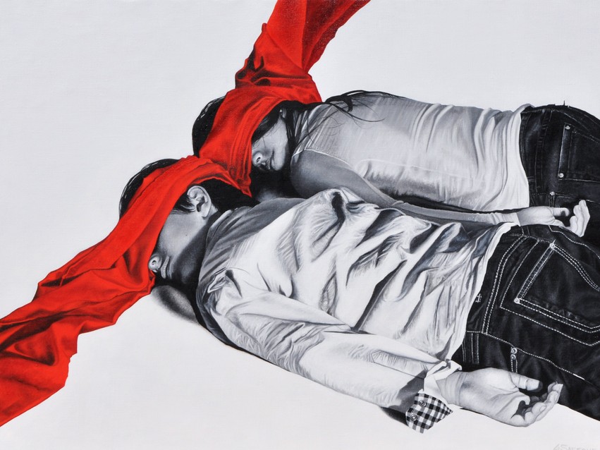 “L’osservazione, quasi ossessiva, da entomologo delle passioni umane, delle debolezze e dei tormenti quotidiani è – si legge in un comunicato – alla base dell’opera del giovane Sassone che fissa nei suoi quadri emozioni rese nitidamente con la puntuale drammaticità del tratto, una precisione spietata che cerca di mostrare, nel dettaglio, quello che normalmente è invisibile. Il vizio di Giuseppe è la pittura, il rosso come vibrazione della sua tensione verso un umanesimo che cerca affrancamento attraverso l'analisi. Giuseppe dipinge la carne viva della solitudine, della incomunicabilità. Grida senza voci, come nei peggiori incubi, cercano conforto in chi guarda. Nei suoi quadri non ci sono sguardi, niente occhi. Gli occhi sono solo di chi osserva, guarda, comprende, e finalmente lenisce il dolore”.